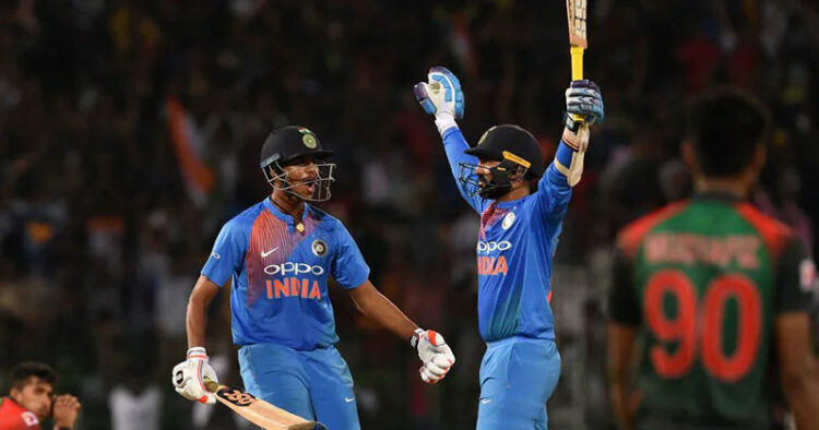 ദിനേശ് കാർത്തിക്കിന് ഉണ്ടായിരുന്ന ശാന്തത ആയിരുന്നെങ്കിൽ അപ്പുറത്ത് നിന്നിരുന്ന വിജയ് ശങ്കർ സമ്മർദ്ദത്തിന്റെ പരകോടിയിലായിരുന്നു. ആ സമ്മർദ്ദം ഇന്ത്യയെ അവസാന ഓവറിൽ തളർത്താൻ തുടങ്ങി. അതിനിടയിൽ വിജയ് ശങ്കർ പുറത്തായതോടെ അവസാന പന്തിൽ ഇന്ത്യയ്ക്ക് ജയിക്കാൻ വേണ്ടത് 5 റൺസ്. അതായത് ഒരു സിക്സർ അടിച്ചാൽ മാത്രം വിജയം, ഫോർ അടിച്ചാൽ കളി സൂപ്പർ ഓവറിലേക്ക്. ബംഗ്ലാദേശിനായി പന്തെറിയുന്നത് സൗമ്യ സർക്കാർ.
