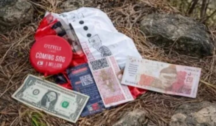 5,000 രൂപയുടെ പാകിസ്താനി കറൻസി നോട്ടും ഒരു യുഎസ് ഡോളറും പതിച്ച രണ്ട് ബലൂണുകൾ കണ്ടെത്തിയതായി ജമ്മു കശ്മീർ പോലീസ് പറഞ്ഞു. കൂടാതെ ഒരു പാകിസ്താൻ മൊബൈൽ നമ്പറും ക്യുആർ കോഡും ബലൂണിനുള്ളിൽ നിന്നും കണ്ടെത്തി. പാകിസ്താൻ അടയാളങ്ങൾ പതിച്ച ബലൂണുകളുടെ ഉദ്ദേശ്യം സുരക്ഷാ സേനയുടെ ശ്രദ്ധ തിരിക്കാനും സാധാരണ പൗരന്മാരിൽ പരിഭ്രാന്തി സൃഷ്ടിക്കാനും ഉദ്ദേശിച്ചുള്ളതാണെന്ന് രഹസ്യാന്വേഷണ ഏജൻസികൾ പറയുന്നു.