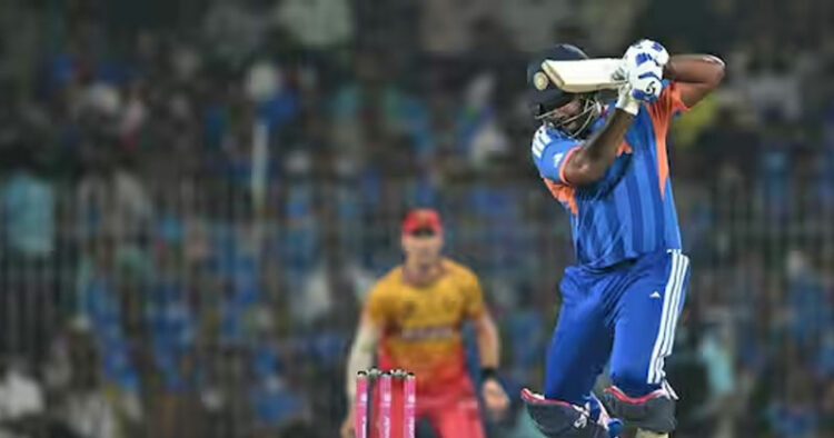 ആദ്യ രണ്ട് ഓവറുകളിലും ഓരോ സിക്സറുകൾ വീതം പറത്തിയാണ് സഞ്ജു തുടങ്ങിയത്. ബ്ലെസിംഗ് മുസറബാനി എറിഞ്ഞ നാലാം ഓവറിലെ സ്ലോവർ ബോൾ സിക്സറടിക്കാനുള്ള ശ്രമത്തിനിടയിലാണ് സഞ്ജു പുറത്തായത്. 15 പന്തിൽ 24 റൺസ് നേടിയായിരുന്നു മടക്കം. റൺസ് കുറവാണെങ്കിലും പവർപ്ലേയിൽ ഇന്ത്യക്ക് ആവശ്യമായ വേഗത നൽകാൻ സഞ്ജുവിന് സാധിച്ചു.