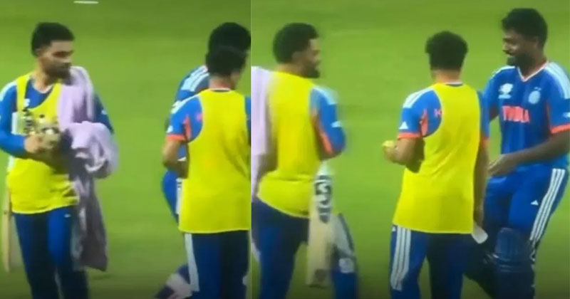 മത്സരത്തിനിടയിലെ ഡ്രിങ്ക്സ് ബ്രേക്കിൽ പന്ത്രണ്ടാമനായി എത്തിയതായിരുന്നു റിങ്കു സിംഗും കുൽദീപ് യാദവും. ആ സമയത്ത് മുഖം തുടയ്ക്കാനായി സഞ്ജു തന്റെ ബാറ്റ് റിങ്കുവിന്റെ കയ്യിൽ നൽകി. എന്നാൽ ടൗവൽ തിരികെ നൽകിയ ശേഷം ബാറ്റ് വാങ്ങാൻ സഞ്ജു മറന്നുപോയി. ബാറ്റ് റിങ്കുവിന്റെ കയ്യിലിരിക്കെ സഞ്ജു ക്രീസിലേക്ക് നടക്കുകയും ചെയ്തു. ഉടൻ തന്നെ കാര്യം മനസ്സിലാക്കി സഞ്ജു ചിരിച്ചുകൊണ്ട് ബാറ്റ് തിരികെ വാങ്ങുന്ന വീഡിയോ ഇപ്പോൾ വൈറലാണ്.