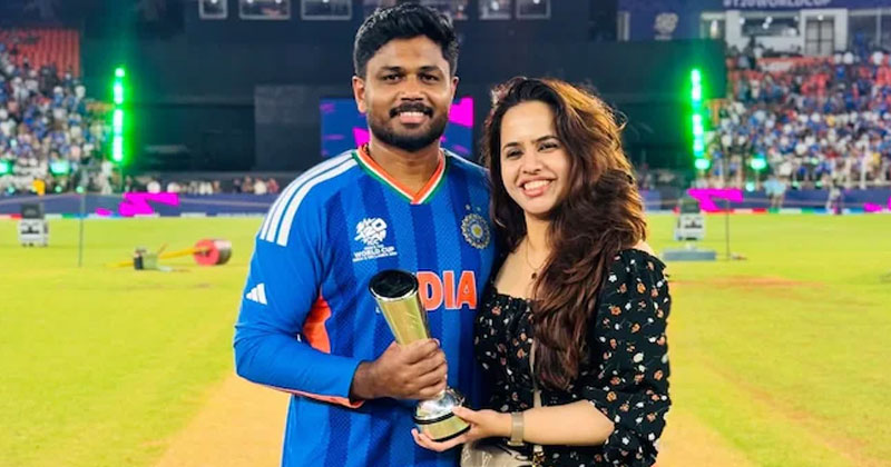 2026 ടി20 ലോകകപ്പിൽ ഇന്ത്യയെ ലോകകിരീടത്തിലേക്ക് നയിച്ച മലയാളി താരം സഞ്ജു സാംസൺ തന്റെ വിജയത്തിന് പിന്നിലെ യഥാർത്ഥ നായികയെ ലോകത്തിന് പരിചയപ്പെടുത്തി. ഫൈനലിൽ ന്യൂസിലൻഡിനെ തകർത്ത് ഇന്ത്യ ചാമ്പ്യന്മാരായതിന് പിന്നാലെ, തന്റെ ഭാര്യ ചാരുലത രമേശിന് ഹൃദയസ്പർശിയായ കുറിപ്പാണ് സഞ്ജു ഇൻസ്റ്റാഗ്രാമിൽ പങ്കുവെച്ചത്. തന്നെക്കാൾ കൂടുതൽ ഈ നിമിഷത്തിനായി ആഗ്രഹിച്ചതും സ്വപ്നം കണ്ടതും ചാരുവാണെന്ന് സഞ്ജു കുറിച്ചു.