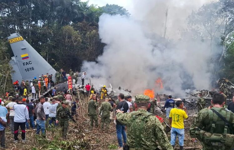 ബൊഗോട്ട : കൊളംബിയയിൽ സൈനിക വിമാനം തകർന്നുവീണ സംഭവത്തിൽ മരണസംഖ്യ 66 കടന്നു. തെക്കേ അമേരിക്കയിലെ കൊളംബിയയിലെ പുട്ടുമായോ പ്രവിശ്യയിൽ സൈനികരെ കൊണ്ടുപോവുകയായിരുന്ന സി-130 ഹെർക്കുലീസ് വിമാനമാണ് തകർന്നു വീണത്. അപകടത്തിൽ ഇതുവരെ 66 പേർ മരിച്ചതായി ഔദ്യോഗിക റിപ്പോർട്ടുകൾ സ്ഥിരീകരിച്ചു. വിമാനത്തിലുണ്ടായിരുന്ന 59 പേരെ പരിക്കുകളോടെ രക്ഷപ്പെടുത്തി.