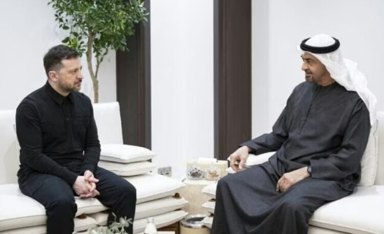 മിഡിൽ ഈസ്റ്റിലെ സ്ഥിതിഗതികൾ, ഹോർമുസ് കടലിടുക്ക് അടച്ചുപൂട്ടൽ, ആഗോള എണ്ണ വിതരണത്തെ ബാധിച്ച ഇറാനിയൻ ആക്രമണങ്ങൾ എന്നിവയെക്കുറിച്ച് താനും അൽ നഹ്യാനും ചർച്ച ചെയ്തതായി സെലെൻസ്കി പറഞ്ഞു. സുരക്ഷാ, പ്രതിരോധ മേഖലകളിൽ സഹകരിക്കാൻ ഇരുപക്ഷവും സമ്മതിച്ചിട്ടുണ്ടെന്നും വിശദാംശങ്ങൾ ഉടൻ അന്തിമമാക്കുമെന്നും അദ്ദേഹം അറിയിച്ചു.