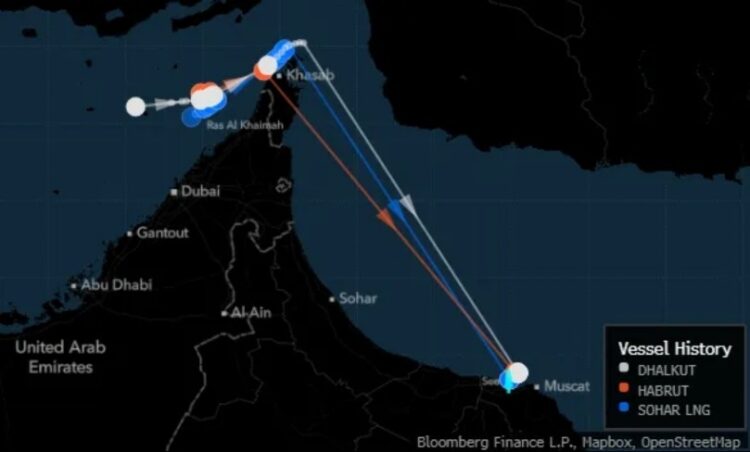 രണ്ട് കൂറ്റൻ ഓയിൽ സൂപ്പർ ടാങ്കറുകളും ഒരു ദ്രവീകൃത പ്രകൃതിവാതക കപ്പലുമാണ് ഒമാൻ തീരത്തോട് ചേർന്നുള്ള പുതിയ പാതയിലൂടെ സഞ്ചരിച്ചത്. സാധാരണയായി ഇറാനിയൻ ദ്വീപുകളായ ലാറക് , ഖ്വേഷ്മ് എന്നിവയ്ക്ക് സമീപമുള്ള വടക്കൻ പാതയിലൂടെയാണ് കപ്പലുകൾ സഞ്ചരിക്കാറുള്ളത്. എന്നാൽ ഈ മൂന്ന് കപ്പലുകളും ഒമാന്റെ മുസന്ദം പെനിൻസുലയോട് ചേർന്ന് തെക്കൻ പാതയിലൂടെയാണ് നീങ്ങിയത്. ലണ്ടൻ സമയം രാവിലെ 9:30-ഓടെ ഈ കപ്പലുകൾ തങ്ങളുടെ ഓട്ടോമേറ്റഡ് ട്രാക്കിംഗ് സിഗ്നലുകൾ ഓഫ് ചെയ്തതായി ബ്ലൂംബെർഗ് റിപ്പോർട്ട് ചെയ്തു. യുദ്ധമേഖലയിൽ കപ്പലുകളുടെ സ്ഥാനം മറച്ചുവെക്കാനാണ് ഇത്തരത്തിൽ ചെയ്യുന്നത്.