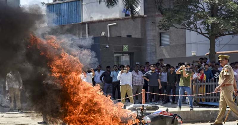 തിങ്കളാഴ്ച നോയിഡയിലെ ഫേസ്-2, സെക്ടർ 60, 62, 84 എന്നിവിടങ്ങളിൽ നടന്ന പ്രതിഷേധം വലിയ തോതിലുള്ള അക്രമത്തിലേക്കാണ് നീങ്ങിയത്. തൊഴിലാളികൾ വാഹനങ്ങൾ അഗ്നിക്കിരയാക്കുകയും കല്ലേറ് നടത്തുകയും ചെയ്തു. ഗതാഗതം പൂർണ്ണമായും തടസ്സപ്പെട്ടതോടെ പൊലീസ് കണ്ണീർവാതകം പ്രയോഗിച്ചു. ഏകദേശം 45,000 തൊഴിലാളികൾ 80-ഓളം കേന്ദ്രങ്ങളിലായി ഒത്തുകൂടിയതായാണ് റിപ്പോർട്ട്. സംഘർഷത്തിന് പിന്നിൽ ഗൂഢാലോചന ഉണ്ടെന്നും മുഖ്യമന്ത്രി യോഗി ആദിത്യനാഥിന്റെ മുസാഫർനഗറിലെ പരിപാടി തടസ്സപ്പെടുത്താൻ ലക്ഷ്യമിട്ടാകാം അക്രമം ആസൂത്രണം ചെയ്തതെന്നും മന്ത്രി രാജ്ഭർ ചൂണ്ടിക്കാട്ടി.