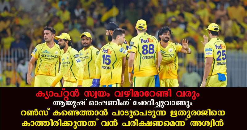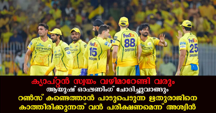 സഞ്ജു സാംസൺ (32 പന്തിൽ 48), ആയുഷ് മാത്രേ (17 പന്തിൽ 38), ഡെവാൾഡ് ബ്രെവിസ് (29 പന്തിൽ 41) എന്നിവരുടെ ബാറ്റിംഗ് പ്രകടനം ചെന്നൈയ്ക്ക് നൽകുന്ന ആത്മവിശ്വാസം ചെറുതല്ല. എന്നാൽ 5 ഇന്നിംഗ്സുകളിൽ നിന്ന് മൂന്നാം തവണയും ഒറ്റയക്കത്തിന് പുറത്തായ ക്യാപ്റ്റൻ രുതുരാജിന്റെ (6 പന്തിൽ 7) ഫോം വലിയ പ്രശ്നമാണ്.