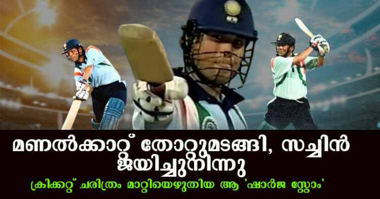 വോൺ, ഫ്ലെമിംഗ് അടക്കമുളള നിരയെ സാക്ഷിയാക്കി സച്ചിൻ ഫൈനൽ യോഗ്യത നേടി കൊടുത്തു. പിന്നാലെ സച്ചിൻ പുറത്തായി, ഇന്ത്യ ആ കളി പരാജയപെട്ടു. എന്നാൽ സച്ചിൻറെ മികവിൽ ഇന്ത്യ ഫൈനൽ ജയിച്ച് കൊക്കോകോള കപ്പ് ഇന്ത്യയിലേക്ക് കൊണ്ടുവന്നു. ‘സച്ചിൻ എന്ന താരത്തോടാണ് ഞങ്ങൾ പരാജയെപട്ടത് എന്ന വോയുടെ വാക്കുകൾ മാത്രം മതി ആ ഇന്നിംഗസ് ഓർക്കാൻ’. ഓർമയിൽ തങ്ങി നിൽക്കുന്ന അനവധി സച്ചിൻ ഇന്നിങ്സുകൾ ഉണ്ടെങ്കിലും മരുഭൂമിയിലെ ആ മായാജാലത്തിന്റെ തട്ട് താണുത്തന്നെ ഇരിക്കും.